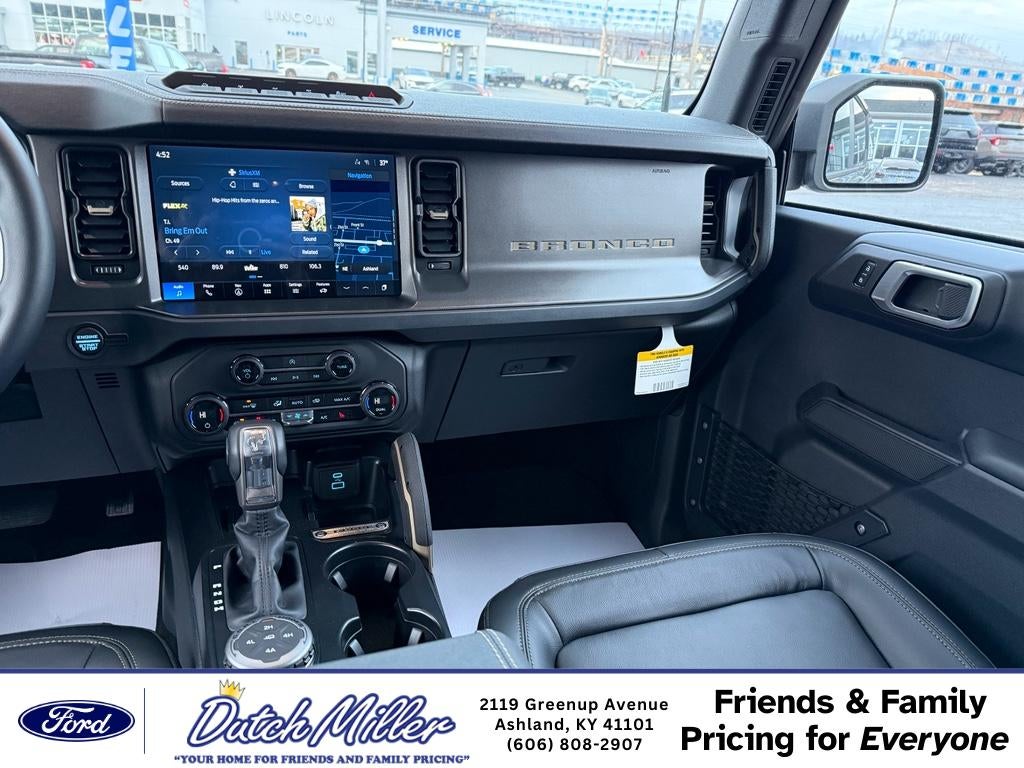 Apple CarPlay: Seamless smartphone integration for this vehicle - stay connected and entertained on the go! Start this unit from inside with remote start. Bluetooth® technology is built into this Ford Bronco, keeping your hands on the steering wheel and your focus on the road. The rear parking assist technology on the vehicle will put you at ease when reversing. The system alerts you as you get closer to an obstruction. Protect the Ford Bronco from unwanted accidents with a cutting edge backup camera system. This model is pure luxury with a heated steering wheel. You'll never again be lost in a crowded city or a country region with the navigation system on this model. An off-road package is equipped on this unit. It's Cross-Traffic Alert: Safeguarding you from unexpected traffic when reversing. Enjoy the heated seats in this vehicle you will never buy a vehicle without them. Everyone loves the comfort of having a warm seat on those cold winter days.