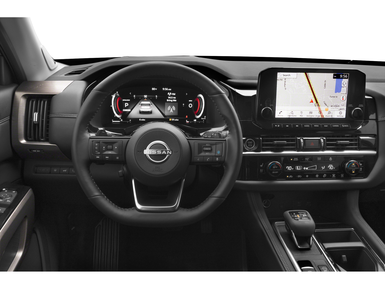 Introducing the 2025 Nissan Pathfinder Platinum, a sophisticated blend of luxury and performance designed to elevate your driving experience. This premium SUV is powered by a robust V6, 3.5L engine, ensuring dynamic performance and impressive handling, especially with its advanced 4WD capabilities that are perfect for any terrain. The Nissan Pathfinder Platinum's exterior is both bold and refined, with sleek lines and a commanding presence on the road. Inside, you'll find a meticulously crafted cabin featuring plush leather seats that provide supreme comfort for all occupants. The thoughtful design extends to an intuitive infotainment system, seamlessly integrated with Apple CarPlay and Android Auto for a connected driving experience. Whether you're navigating city streets or exploring off the beaten path, the integrated navigation system ensures you always find the best route. Safety and convenience are paramount, highlighted by a state-of-the-art back-up camera that provides a clear view of your surroundings, enhancing maneuverability and peace of mind. The 2025 Nissan Pathfinder Platinum is not just a means of transportation; it's a statement of style and sophistication, offering unparalleled luxury and performance for those who demand the best in their driving adventures.