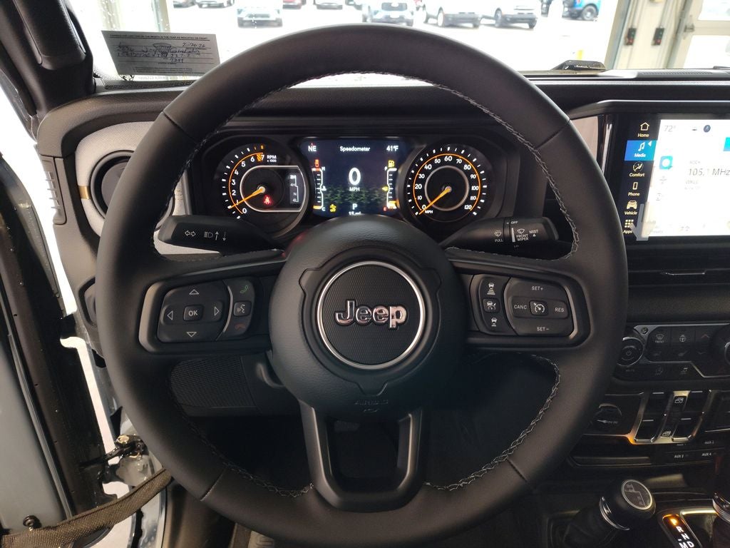 An off-road package is equipped on this 2026 Jeep Gladiator . This Jeep Gladiator offers Apple CarPlay for seamless connectivity. Bluetooth® technology is built into this 2026 Jeep Gladiator , keeping your hands on the steering wheel and your focus on the road. The vehicle's Forward Collision Warning feature alerts drivers to potential front-end collisions. Never get into a cold vehicle again with the remote start feature on this Jeep Gladiator. This Jeep Gladiator is pure luxury with a heated steering wheel. See what's behind you with the back up camera on this model. This model comes equipped with Android Auto for seamless smartphone integration on the road. This model offers Automatic Climate Control for personalized comfort. This unit has a V6, 3.6L high output engine. When you encounter slick or muddy roads, you can engage the four wheel drive on this 1/2 ton pickup and drive with confidence. Maintaining a stable interior temperature in this 1/2 ton pickup is easy with the climate control system.