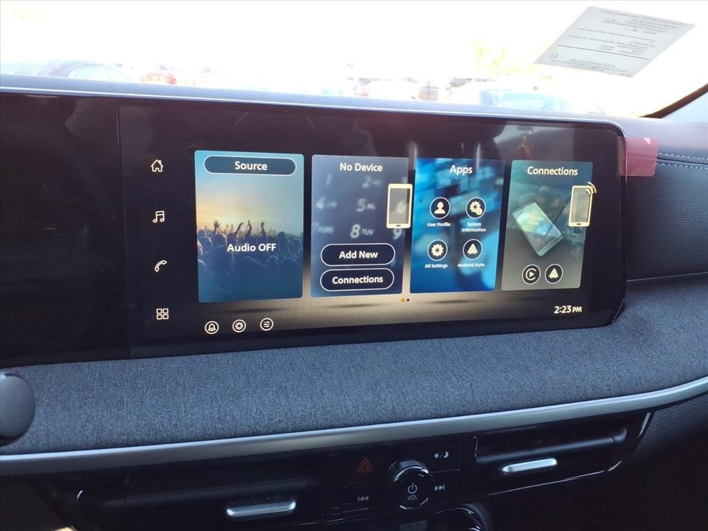 - Radio: AM/FM/SiriusXM Audio System -inc: 12.3" color touchscreen display w/4 speakers, Bluetooth® hands-free phone system, streaming audio via Bluetooth®, NissanConnect featuring wireless Apple CarPlay, wireless Android Auto, Siri eyes free and hands-free text messaging assistant, audio and Bluetooth® steering wheel switches