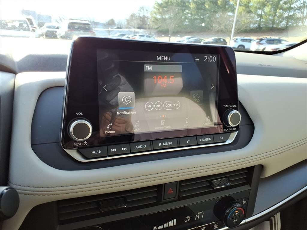 - Radio: AM/FM NissanConnect -inc: 6 speakers plus 2 tweeters, Apple CarPlay, Android Auto, 8" color touch screen display, Bluetooth®, 2 front USB type-C, Wi-Fi hotspot and NissanConnect Services powered by SiriusXM