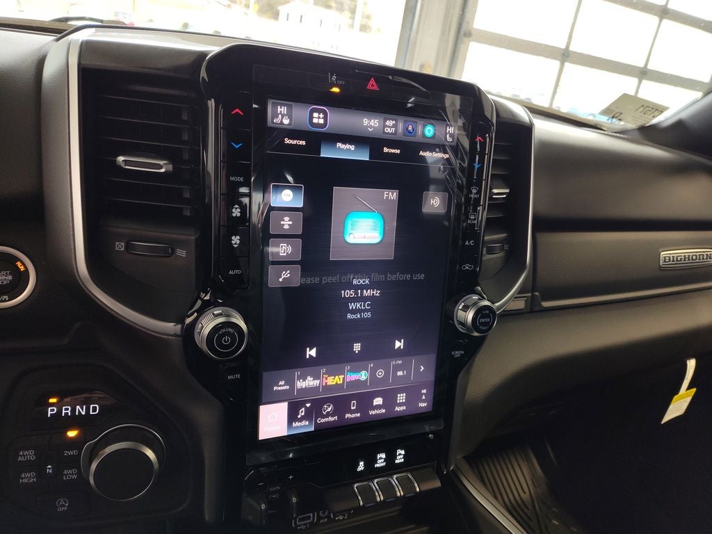 Quick Order Package 27Z Big Horn. Big Horn Level 2 Equipment Group: Google Android Auto; SiriusXM Radio Service; USB Host Flip; Power Adjustable Pedals; Leather Wrapped Steering Wheel; Integrated Voice Command with Bluetooth®; 12" Touchscreen Display; Glove Box Lamp; Auto Power-Folding Mirrors; 115V Auxiliary Rear Power Outlet; Media Hub with 2 Charge Only USBs; Heated Front Seats; Security Alarm; Black Premium Power Mirrors; Apple CarPlay; Premium Overhead Console; 9 Amplified Speakers with Subwoofer; Disassociated Touchscreen Display; Body Color Fender Flares; Remote Tailgate Release; 115V Auxiliary Power Outlet; LED Dome Lamp with On/off Switch; Universal Garage Door Opener; 2nd Row in Floor Storage Bins; Sun Visors with Illuminated Vanity Mirrors; LED Footwell Lighting; Rear Window Defroster; Integrated Center Stack Radio; Rear View Auto Dim Mirror; Rear Power Sliding Window; Connectivity - US/Canada; GPS Navigation; 4G LTE Wi-Fi Hot Spot; GPS Antenna Input; Overhead LED Lamps; Exterior Mirrors with Heating Element; Auto Dim Exterior Driver Mirror; SiriusXM with 360L; Global Telematics Box Module; Connected Travel and Traffic Services; Heated Steering Wheel; Configurable Drive Mode; 400W Inverter; HD Radio; Deluxe Cloth Bucket Seats; Uconnect 5 Navigation with 12.0" Display Radio; Exterior Mirrors with Supplemental Signals; Steering Wheel Mounted Audio Controls; Exterior Mirrors Courtesy Lamps; Air Conditioning ATC with Dual Zone Control; Cluster 7.0" TFT Color Display; Convex Wide-Angle Exterior Mirror Insert. Night Edition: 275/55R20 OWL All Season Tires; Accent Color Premium Power Mirrors; Exterior Mirrors with Supplemental Signals; Black Headlamp Bezels; Exterior Mirrors Courtesy Lamps; Grille Black Surround Black Mesh; Auto Power-Folding Mirrors; Exterior Mirrors with Heating Element; 20" X 9.0" Aluminum Painted Clad Wheels; Auto Dim Exterior Driver Mirror; Black Exterior Truck Badging; Anti-Spin Differential Rear Axle; Accent Color Door Handles; Accent Color Tailgate Handle; Black Interior Accents; Dual Exhaust with Black Tips; Body Color Front Bumper; Convex Wide-Angle Exterior Mirror Insert; Body Color Rear Bumper with Step Pads; Black Tail Lamp Bezels; RAM Grille Badge - Black; Black Painted Exterior Mirrors Caps. Bed Utility Group: MOPAR Spray in Bedliner; MOPAR Deployable Bed Step; MOPAR 4 Adjustable Cargo Tie-Down Hooks; Pick-Up Box Lighting; Exterior 115V AC Outlet. Protection Group: Steering Gear Skid Plate; Tow Hooks; Transfer Case Skid Plate; Fuel Tank Skid Plate. Quick Order Package 23Z Big Horn. 9 Amplified Speakers with Subwoofer. Anti-Spin Differential Rear Axle. Trailer Brake Control. Granite Crystal Met CC. Cluster 12" TFT Color Display. MyFlexCare Service Plan. MOPAR Front and Rear Rubber Floor Mats. 3.92 Rear Axle Ratio. **Equipment listed is based on original vehicle build and subject to change. Please confirm the accuracy of the included equipment by calling the dealer prior to purchase.**