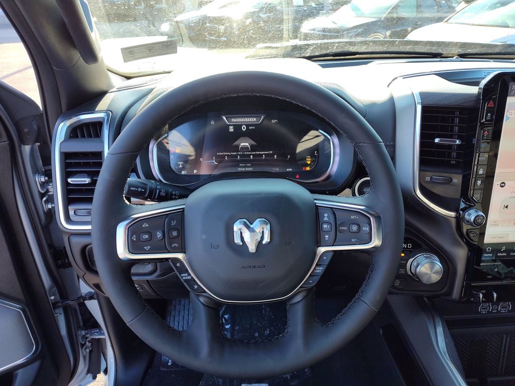 Advanced Safety Group II: Exterior Mirrors Approach Lamps; Active Driving Assist System; Surround View Camera System; Evasive Steer Assist; Drowsy Driver Detection; Intersection Collision Assist System; Traffic Sign Recognition; 12-Way/1-way Trailer Connector. Quick Order Package 27H Laramie. Laramie Level 2 Equipment Group: SiriusXM Radio Service; USB Host Flip; Rain Sensitive Windshield Wipers; 14.4" Touchscreen Display; Integrated Center Stack Radio; Front Passenger Interactive Display; Integrated Voice Command with Bluetooth®; Connectivity - US/Canada; Uconnect 5 Nav with 14.4" Display; GPS Navigation; 4G LTE Wi-Fi Hot Spot; Harman/kardon 19 Speaker Premium Sound; SiriusXM with 360L; Connected Travel and Traffic Services; Cluster 12" TFT Color Display; Power Tailgate. Sport Appearance Package: Accent Color Premium Power Mirrors; Exterior Mirrors with Supplemental Signals; Sport Performance Hood; Exterior Mirrors Courtesy Lamps; RAM Grille Badge - Chrome; Auto Power-Folding Mirrors; Exterior Mirrors with Heating Element; Auto Dim Exterior Driver Mirror; Exterior Mirrors with Memory; Black Interior Accents; Body Color Front Bumper; Convex Wide-Angle Exterior Mirror Insert; Body Color Rear Bumper with Step Pads; Bridgestone Brand Tires; Grille Surround 3 Body Color Tex 2 Black; Black Painted Exterior Mirrors Caps. Technology Group: Head Up Display; LED CHMSL Lamp; Digital Rearview Mirror; 12-Way/1-way Trailer Connector. 22" X 9" Forged Aluminum Wheels. Anti-Spin Differential Rear Axle. Trailer Brake Control. Silver Zynith. MOPAR Front and Rear Rubber Floor Mats. 3.92 Rear Axle Ratio. **Equipment listed is based on original vehicle build and subject to change. Please confirm the accuracy of the included equipment by calling the dealer prior to purchase.**
