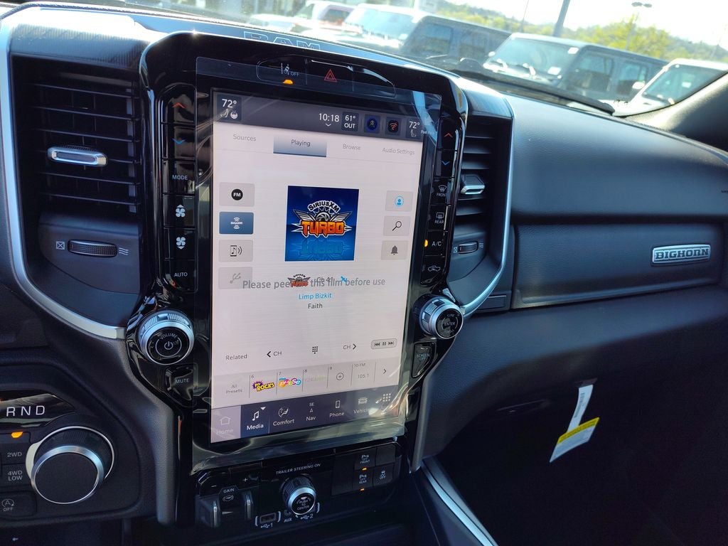 Quick Order Package 27Z Big Horn. Big Horn Level 2 Equipment Group: Google Android Auto; SiriusXM Radio Service; USB Host Flip; Power Adjustable Pedals; Leather Wrapped Steering Wheel; Integrated Voice Command with Bluetooth®; 12" Touchscreen Display; Glove Box Lamp; Auto Power-Folding Mirrors; 115V Auxiliary Rear Power Outlet; Media Hub with 2 Charge Only USBs; Heated Front Seats; Security Alarm; Black Premium Power Mirrors; Apple CarPlay; Premium Overhead Console; 9 Amplified Speakers with Subwoofer; Disassociated Touchscreen Display; Body Color Fender Flares; Remote Tailgate Release; 115V Auxiliary Power Outlet; LED Dome Lamp with On/off Switch; Universal Garage Door Opener; 2nd Row in Floor Storage Bins; Sun Visors with Illuminated Vanity Mirrors; LED Footwell Lighting; Rear Window Defroster; Integrated Center Stack Radio; Rear View Auto Dim Mirror; Rear Power Sliding Window; Connectivity - US/Canada; GPS Navigation; 4G LTE Wi-Fi Hot Spot; GPS Antenna Input; Overhead LED Lamps; 20" X 9" Aluminum Chrome Clad Wheels; Exterior Mirrors with Heating Element; Auto Dim Exterior Driver Mirror; SiriusXM with 360L; Global Telematics Box Module; Connected Travel and Traffic Services; Heated Steering Wheel; Black Exterior Mirrors; Configurable Drive Mode; 400W Inverter; HD Radio; Deluxe Cloth Bucket Seats; Uconnect 5 Navigation with 12.0" Display Radio; Exterior Mirrors with Supplemental Signals; Steering Wheel Mounted Audio Controls; Exterior Mirrors Courtesy Lamps; Air Conditioning ATC with Dual Zone Control; Cluster 7.0" TFT Color Display; Convex Wide-Angle Exterior Mirror Insert. Towing Technology Group: Trailer Hitch Line-Up Assist. Trailer Tow Group II: Trailer Light Check; Trailer Brake Control; Accent Color Tailgate Handle; Trailer Reverse Steering Control; Trailer Tire Pressure Monitoring System. Quick Order Package 23Z Big Horn. 20" X 9" Aluminum Chrome Clad Wheels. 9 Amplified Speakers with Subwoofer. Anti-Spin Differential Rear Axle. 33 Gallon Fuel Tank. Trailer Brake Control. Forged Blue Metallic. Cluster 12" TFT Color Display. Black Trailer Tow Power Mirrors. MOPAR Front and Rear Rubber Floor Mats. 3.92 Rear Axle Ratio. Rear Wheelhouse Liners. **Equipment listed is based on original vehicle build and subject to change. Please confirm the accuracy of the included equipment by calling the dealer prior to purchase.**