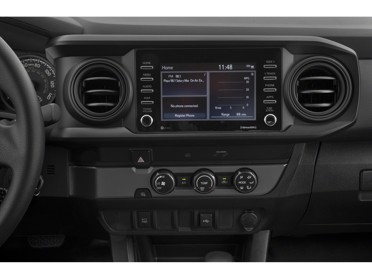 See what's behind you with the back up camera on this 2021 Toyota Tacoma . Bluetooth® technology is built into this unit, keeping your hands on the steering wheel and your focus on the road. This Toyota Tacoma offers Automatic Climate Control for personalized comfort. Apple CarPlay: Seamless smartphone integration for the Toyota Tacoma - stay connected and entertained on the go! The Toyota Tacoma offers Android Auto for seamless smartphone integration. Our dealership has already run the CARFAX report and it is clean. A clean CARFAX is a great asset for resale value in the future. Set the temperature exactly where you are most comfortable in this Toyota Tacoma. The fan speed and temperature will automatically adjust to maintain your preferred zone climate. The Toyota Tacoma has four wheel drive capabilities. This Toyota Tacoma has a V6, 3.5L high output engine. This small pickup excites both driver and bystanders with a polished red exterior with racy lines.