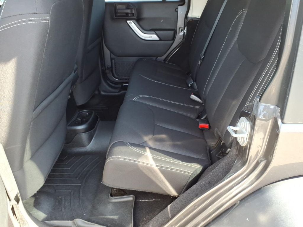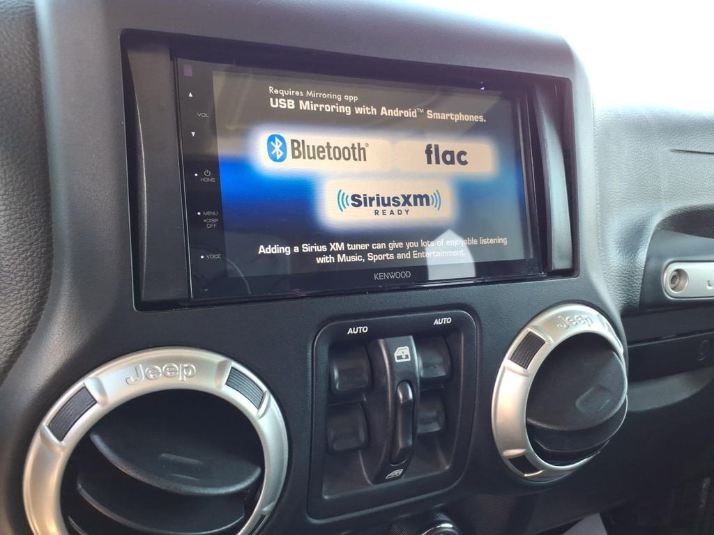 Start this vehicle from inside with remote start. It has a clean CARFAX vehicle history report. This vehicle features a hands-free Bluetooth® phone system. Maintaining a stable interior temperature in this vehicle is easy with the climate control system. The vehicle has four wheel drive capabilities. It has a V6, 3.6L high output engine. This vehicle projects refinement with a racy metallic gray exterior. The fog lights cut through the weather so you can see what's ahead. The Electronic Stability Control will keep you on your intended path. The high efficiency automatic transmission shifts smoothly and allows you to relax while driving. The Jeep Wrangler features cruise control for long trips. Enjoy the tried and true gasoline engine in this model. The spacious cabin accommodates your family and friends in comfort. Take it to the mountains or the beach. the Jeep Wrangler can handle it all.