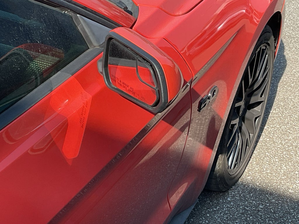 This small car features a hands-free Bluetooth® phone system. See what's behind you with the back up camera on this Ford Mustang. This model has a clean CARFAX vehicle history report. The Ford Mustang has an attractive deep orange exterior. The Ford Mustang has a V8, 5.0L high output engine. Maintaining a stable interior temperature in this model is easy with the climate control system. Enjoy the incredible handling with the rear wheel drive on this model. It comes with a manual transmission. Electronic Stability Control is one of many advanced safety features on the vehicle. The fog lights cut through the weather so you can see what's ahead. This model features cruise control for long trips. This small car looks aggressive with a streamlined rear spoiler. Enjoy the tried and true gasoline engine in this 2015 Ford Mustang . Help alleviate lower back pain with the driver seat lumbar support in the Ford Mustang.