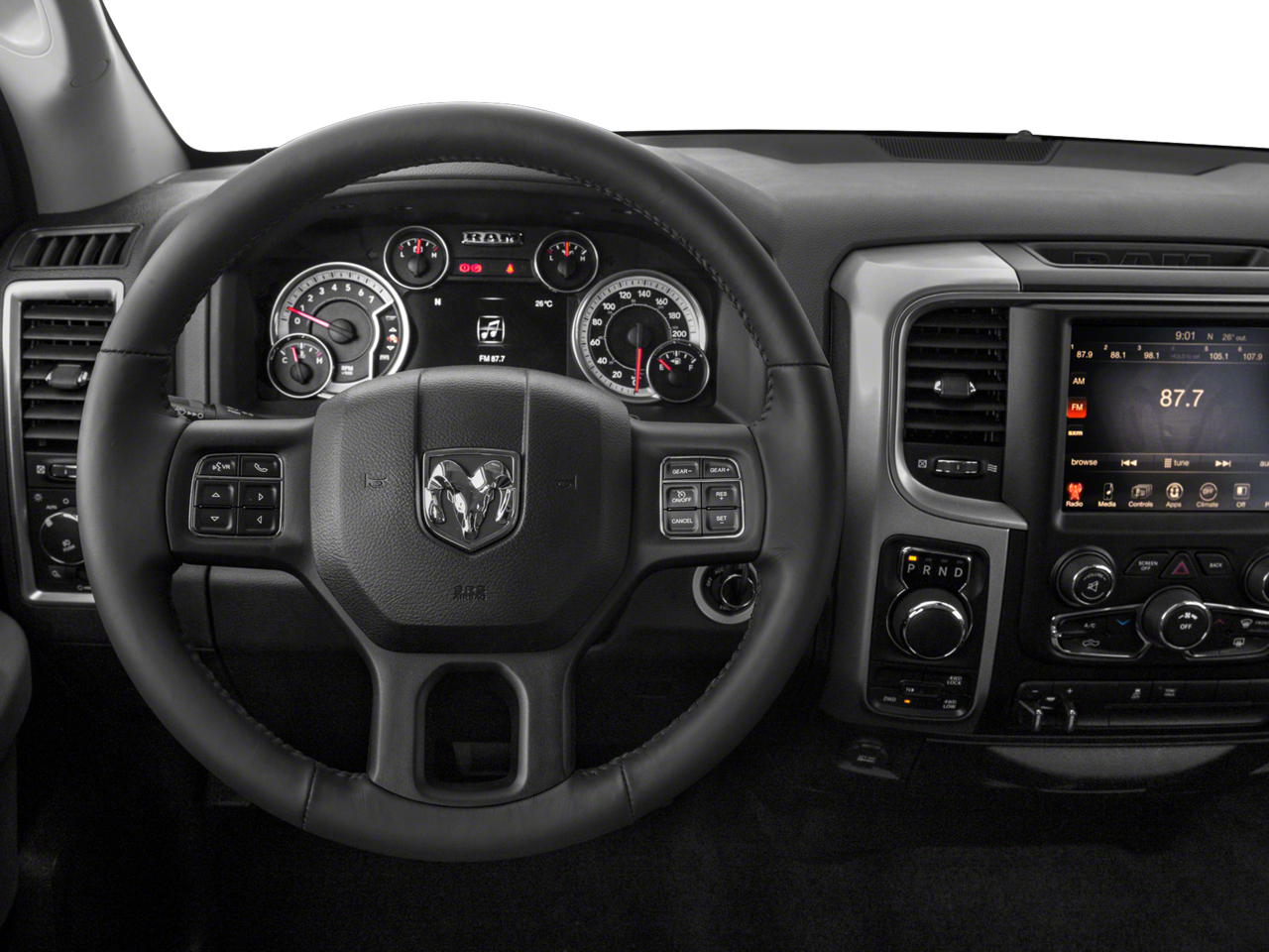 Quick Order Package 26S Big Horn: Rear View Auto Dim Mirror; Leather Wrapped Steering Wheel; Rear Dome with On/off Switch Lamp; Underhood Lamp; Fog Lamps; LED Bed Lighting; Glove Box Lamp; Bright/bright Billets Grille; P275/60R20 BSW AS Tires; Auto Dim Exterior Mirrors; Big Horn Regional Package; 20" X 8" Aluminum Chrome Clad Wheels; Big Horn Badge; Class IV Receiver Hitch; Security Alarm; Power Heated Fold-Away Mirrors; Electroluminescent Instrument Cluster; Overhead Console with Garage Door Opener; Remote Start System; Full Size Temporary Use Spare Tire; Uconnect 3C Radio with 8.4" Display; Exterior Mirrors with Supplemental Signals; Steering Wheel Mounted Audio Controls; Exterior Mirrors Courtesy Lamps; Air Conditioning ATC with Dual Zone Control; 6. 900 lbs GVWR; Electric Shift on Demand Transfer Case; Power-Folding Mirrors; Dual Rear Exhaust with Bright Tips; ParkView Rear Back-Up Camera; Sun Visors with Illuminated Vanity Mirrors; ParkSense Front/rear Park Assist System. Quick Order Package 22S Big Horn: Rear View Auto Dim Mirror; Leather Wrapped Steering Wheel; Rear Dome with On/off Switch Lamp; Underhood Lamp; Fog Lamps; LED Bed Lighting; Glove Box Lamp; Bright/bright Billets Grille; P275/60R20 BSW AS Tires; Auto Dim Exterior Mirrors; Big Horn Regional Package; 20" X 8" Aluminum Chrome Clad Wheels; Big Horn Badge; Class IV Receiver Hitch; Security Alarm; Power Heated Fold-Away Mirrors; Electroluminescent Instrument Cluster; Overhead Console with Garage Door Opener; Remote Start System; Full Size Temporary Use Spare Tire; Uconnect 3C Radio with 8.4" Display; Exterior Mirrors with Supplemental Signals; Steering Wheel Mounted Audio Controls; Exterior Mirrors Courtesy Lamps; Air Conditioning ATC with Dual Zone Control; Electric Shift on Demand Transfer Case; Power-Folding Mirrors; ParkView Rear Back-Up Camera; Sun Visors with Illuminated Vanity Mirrors; ParkSense Front/rear Park Assist System. Wheel to Wheel Side Steps. Anti-Spin Differential Rear Axle. Premium Cloth Bucket Seats. **Equipment listed is based on original vehicle build and subject to change. Please confirm the accuracy of the included equipment by calling the dealer prior to purchase.**