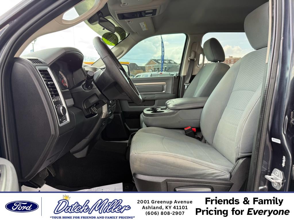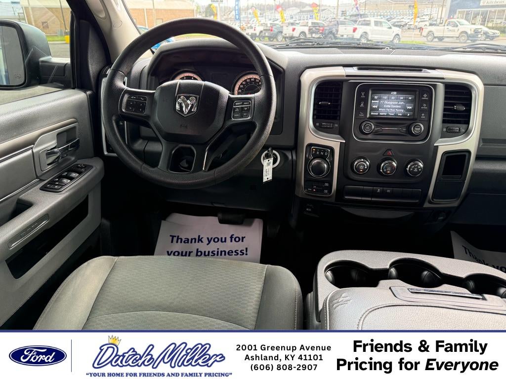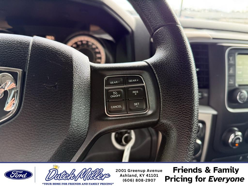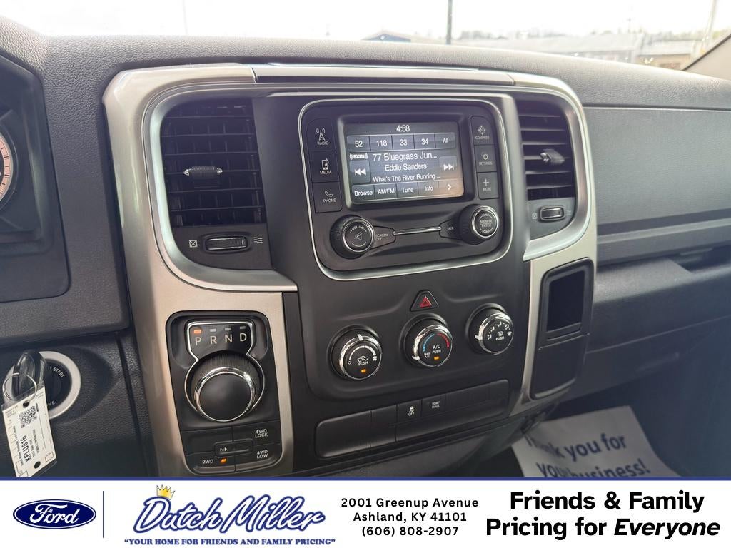 2017 Ram 1500 Big Horn 4WD — V8 5.7L, located in Ashland, KY. This rugged half-ton blends proven V8 power with practical features for everyday driving and work. Under the hood, the 5.7L V8 delivers strong towing and passing performance, while four-wheel drive enhances traction in wet or snowy conditions around Ashland and beyond. Inside, the Big Horn cabin balances comfort and utility. Automatic climate control keeps the interior comfortable on long drives, and Hands-Free Bluetooth® with steering-wheel controls simplifies calls and media. Remote start adds convenience during Kentucky's seasonal extremes, letting you warm up or cool down the truck before you climb in. Safety and parking are easier with a back-up camera and rear parking sensors, improving visibility and reducing fender-bender risk during tight maneuvers. This Ram 1500 showcases durable materials and a commanding driving position, with spacious seating and a practical bed for hauling gear, tools, or recreational equipment. Regular maintenance has kept it road-ready, making it an ideal choice for contractors, outdoor enthusiasts, or families needing a dependable truck. Located in Ashland, KY, this 2017 Ram 1500 Big Horn is competitively priced and offers the best value for buyers seeking performance, capability, and comfort. Contact us to schedule a test drive and experience the V8 power and 4WD capability in person.