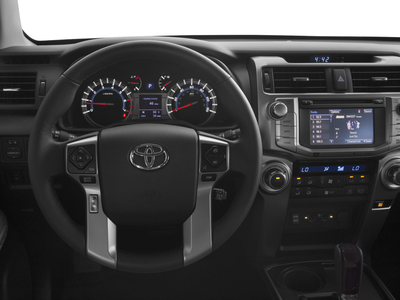 See what's behind you with the back up camera on this mid-size suv. This unit keeps you comfortable with Auto Climate. The leather seats are soft and supportive on this Toyota 4Runner. Bluetooth® technology is built into the vehicle, keeping your hands on the steering wheel and your focus on the road. The installed navigation system will keep you on the right path. The rear parking assist technology on this vehicle will put you at ease when reversing. The system alerts you as you get closer to an obstruction. Our dealership has already run the CARFAX report and it is clean. A clean CARFAX is a great asset for resale value in the future. This vehicle is a certified CARFAX 1-owner. Set the temperature exactly where you are most comfortable in this 2017 Toyota 4Runner . The fan speed and temperature will automatically adjust to maintain your preferred zone climate.