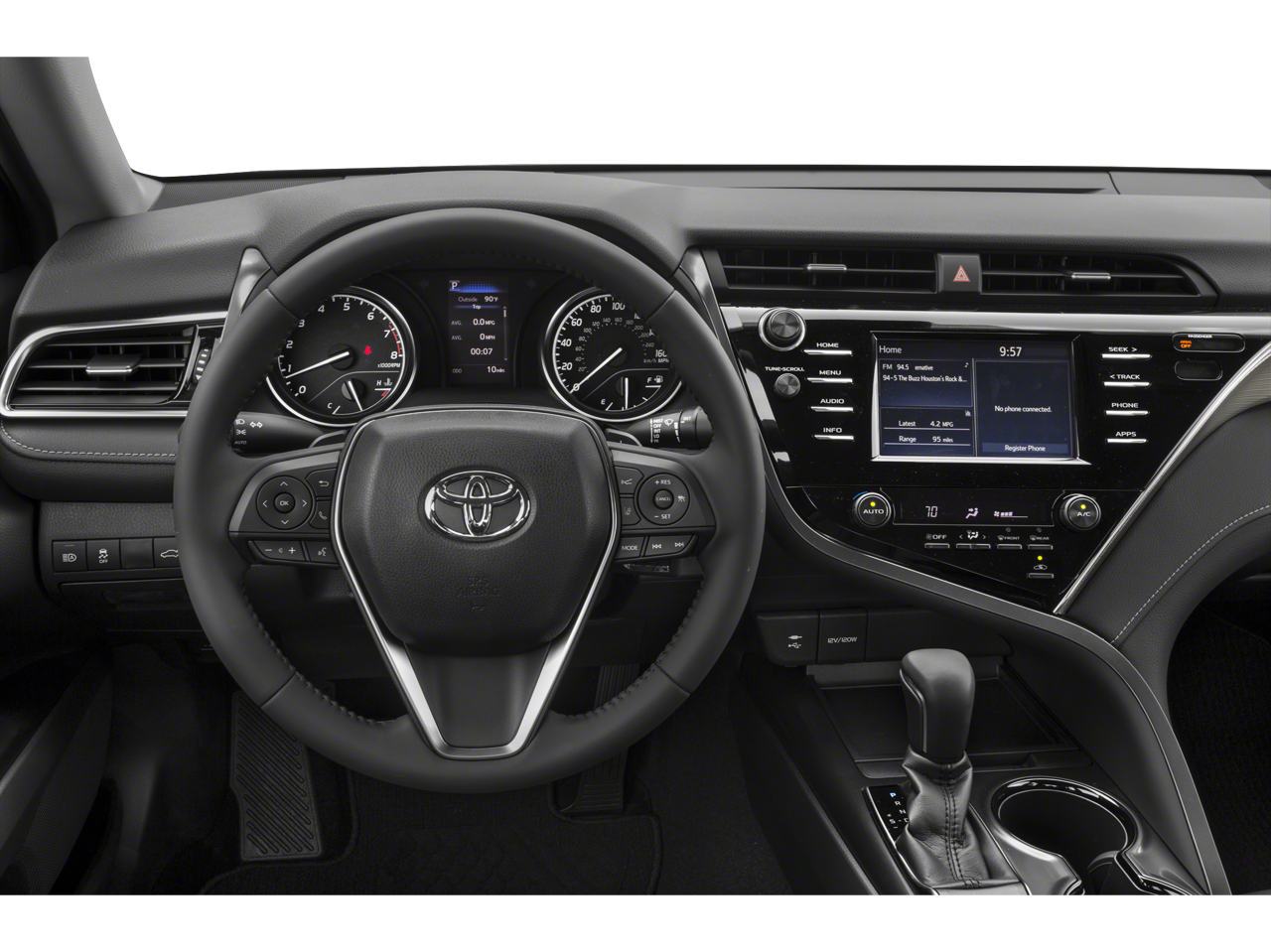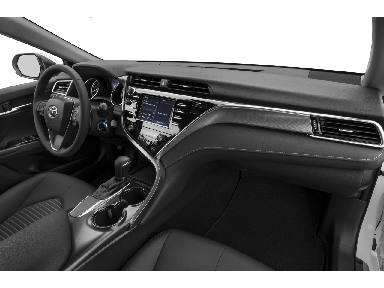 Apple CarPlay: Seamless smartphone integration for this unit - stay connected and entertained on the go! Protect this model from unwanted accidents with a cutting edge backup camera system. Our dealership has already run the CARFAX report and it is clean. A clean CARFAX is a great asset for resale value in the future. The leather seats in it are a must for buyers looking for comfort, durability, and style. This model offers Automatic Climate Control for personalized comfort. Bluetooth® technology is built into it, keeping your hands on the steering wheel and your focus on the road. Set the temperature exactly where you are most comfortable in this vehicle. The fan speed and temperature will automatically adjust to maintain your preferred zone climate. This Toyota Camry shines with an exquisite metallic silver exterior finish. It has a 4 Cyl, 2.5L high output engine. It is front wheel drive. It looks aggressive with a streamlined rear spoiler.
