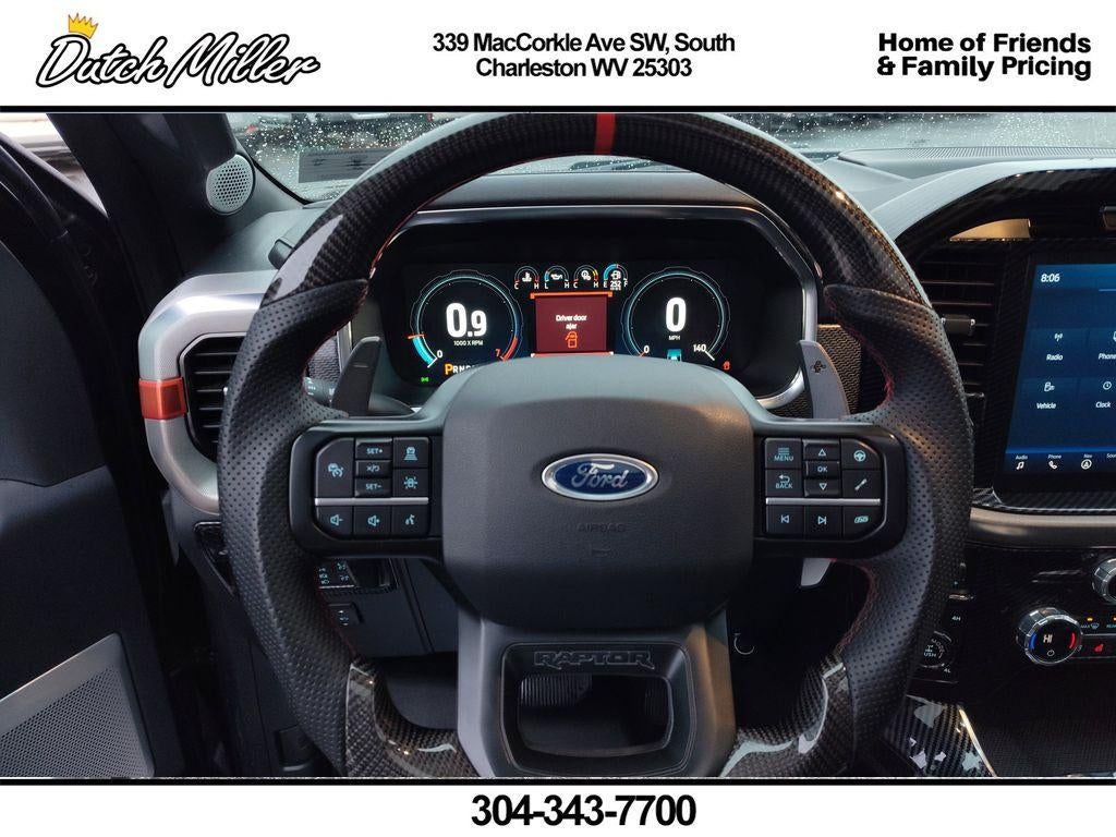 Power Tech Package: Power Tailgate; Pro Power Onboard - 2KW. Equipment Group 801A High: Electronic Locking with 4.10 Axle Ratio; Wireless Charging Pad; 3.5L V6 EcoBoost High Output Engine; Electronic 10-Speed Automatic Transmission; Rain-Sensing Wipers; Power Tilt/telescoping Steering Column with Memory; 7. 050 lbs Payload Package GVWR; Leather Trim Seats with Heated 2nd Row; Tailgate Applique Ford; BlueCruise Prep Kit; Forward Sensing System; B&O Unleashed Sound System by Bang & Olufsen Radio; LT315/70R17 BSW A/T Tires; Universal Garage Door Opener; Heated Steering Wheel; LED Projector with Dynamic Bending Headlamps. Torsen Package: Front-Axle with Torsen Differential; Rigid LED Fog Lamp. Convenience Package: Interior Work Surface; Connected Built-In Navigation; Partitioned Lockable Fold-Flat Storage. Tow Technology Package: Integrated Trailer Brake Controller; 360 Degree Camera; Pro Trailer Backup Assist. 17" Forged Aluminum Bead-Lock Capable Wheels. Twin Panel Moonroof. Raptor Carbon Fiber Package. Tough Bed Spray-In Bedliner. **Equipment listed is based on original vehicle build and subject to change. Please confirm the accuracy of the included equipment by calling the dealer prior to purchase.**