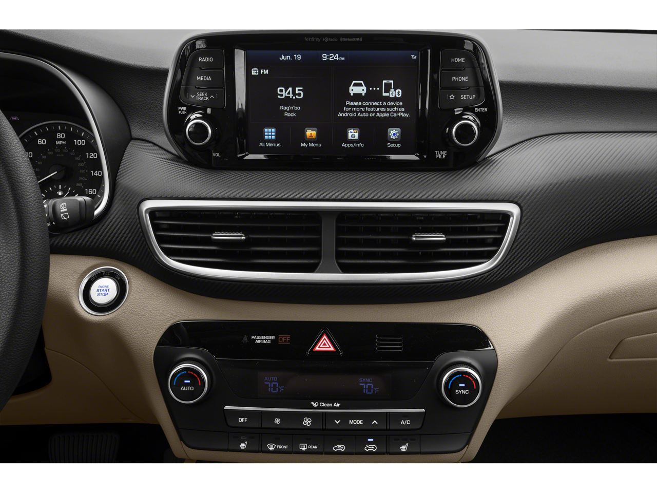 Never get into a cold vehicle again with the remote start feature on this Hyundai Tucson. This vehicle is a certified CARFAX 1-owner. This vehicle comes equipped with Android Auto for seamless smartphone integration on the road. See what's behind you with the back up camera on this Hyundai Tucson. Apple CarPlay: Seamless smartphone integration for this mid-size suv - stay connected and entertained on the go! Our dealership has already run the CARFAX report and it is clean. A clean CARFAX is a great asset for resale value in the future. This unit offers Automatic Climate Control for personalized comfort. Bluetooth® technology is built into this unit, keeping your hands on the steering wheel and your focus on the road. This Hyundai Tucson has a 4 Cyl, 2.4L high output engine. Impresses the most discerning driver with the deep polished blue exterior on this unit. Maintaining a stable interior temperature in the Hyundai Tucson is easy with the climate control system.