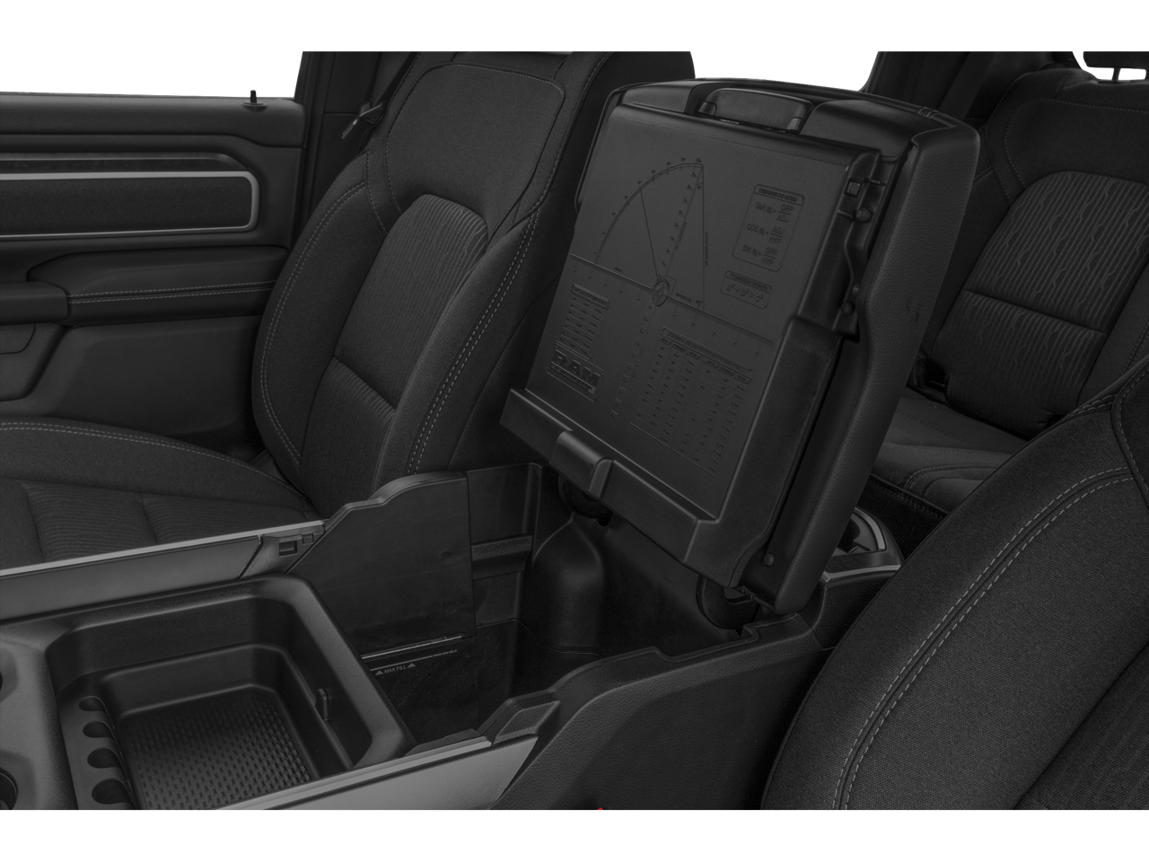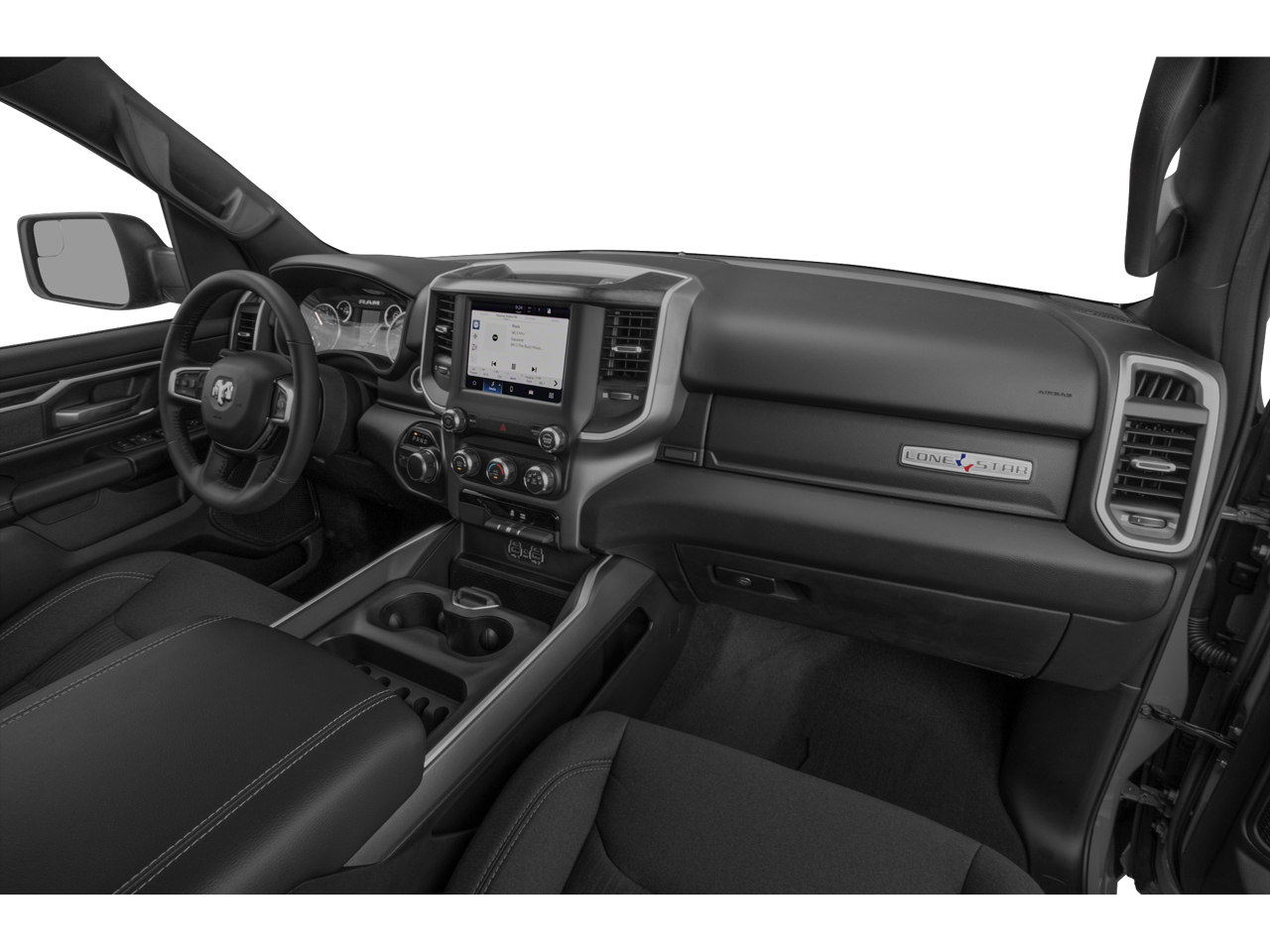 - Big Horn Level 1 Equipment Group: Rear Window Defroster; Auto-Dimming Rearview Mirror; Power Adjustable Pedals; Rear Power Sliding Window; Rear Dome Lamp with On/off Switch; Glove Box Lamp; Power 8-Way Driver Seat; Rear Underseat Compartment Storage; Universal Garage Door Opener; 3.5" Colour In-Cluster Display; Uconnect 5 with 8.4" Display Radio; Door Trim Panel Foam Bottle Insert; Class IV Receiver Hitch; 2nd Row In-Floor Storage Bins; Sun Visors with Illuminated Vanity Mirrors; Big Horn Instrument Panel Badge; Power 2-Way Driver Lumbar Adjust