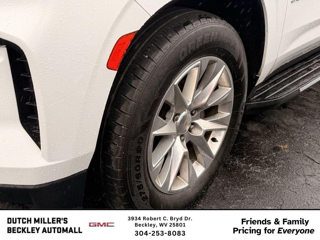 Preferred Equipment Group 1LZ: Bright Front and Rear Door Sill Plates; 20" X 9" Polished Aluminum Wheels; Memory Settings; Perforated Leather Seating Surfaces; Remote Start; 3rd Row 60/40 Power-Folding Split-Bench; Safety Alert Seat; Chrome Door Handles with Body-Color Strip; Hill Descent Control; Heated Steering Wheel; LED Daytime Running Lamps; Rear Cross Traffic Alert; Driver and Front Outboard Passenger Airbags; Heated Driver and Front Passenger Seats; Wireless Charging; Front Bucket Seats; Universal Home Remote; Color-Keyed Carpeting Floor Covering; Heated 2nd Row Outboard Seats; Hands-Free Rear Power Programmable Liftgate; Chevrolet Infotainment 3 Premium System Radio; 2-Speed Active Electronic Autotrac Transfer Case; 1st and 2nd Row Color-Keyed Carpeted Floor Mats; Enhanced Driver Information Center; Floor Console; Lane Change Alert with Side Blind Zone Alert; Chrome Mirror Caps; Dual Exhaust System; SiriusXM Radio with 360L; Heated and Ventilated Driver and Front Passenger Seats; Wrapped Steering Wheel; Power Tilt and Telescopic Steering Column; Bose 10-Speaker Surround with CenterPoint